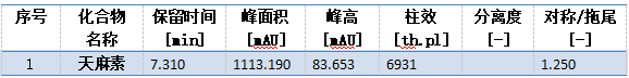 取天麻素对照品适量,精密称定,加流动相制成每1ml含50μg的溶液,即得。