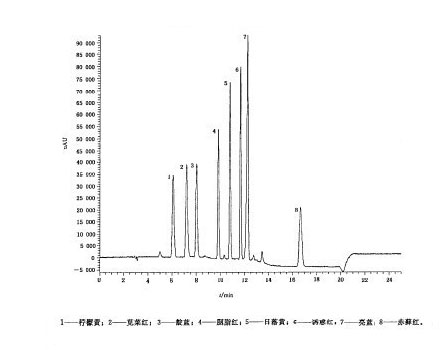 爱彩8食品中人工合成着色剂用聚酰胺吸附法或液液分配法提取,制成水溶液,注入高效液相色谱仪,经反相色谱分离。