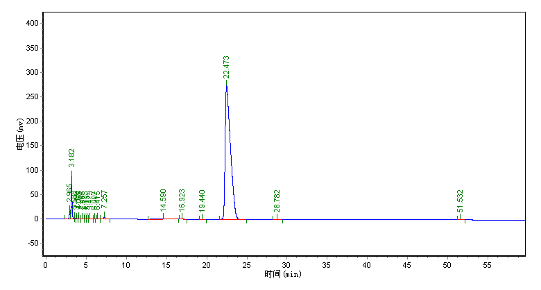取本品50mg,置50ml容量瓶中,加流动相溶解并稀释至刻度,超声,抽滤,作为供试品;精密量取1ml,置100ml容量瓶,用流动相稀释至刻度,超声,抽滤,作为对照品。抽取20μl注入液相色谱仪。