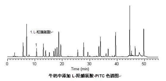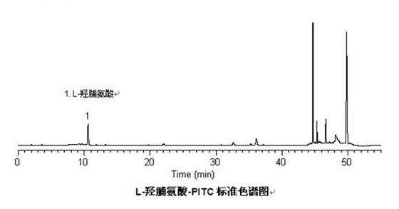赛智科技应用质检部采用L-羟脯氨酸衍生方法,利用公司自己的LC-10Tvp高效液相色谱仪,对L-羟脯氨酸进行了分析检测试验,并通过公司的VI2010色谱工作站进行了详细分析,得出的检测结果准确,可靠。
