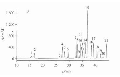 爱彩8梯度洗脱:0~25 min,流动相A由5%线性变化至55%;25~40 min,流动相A由55%线性变化至80%;