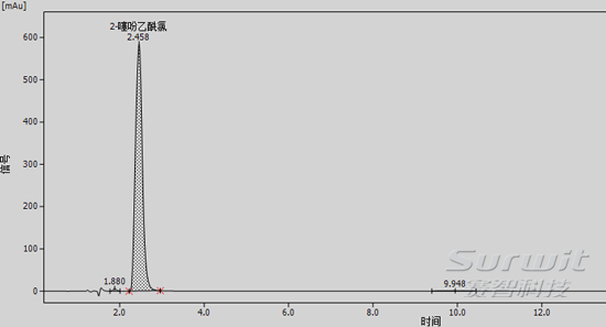 准确称取样品适量,用稀释剂配制成1mg/ml样品溶液,用0.45um针式过滤器过滤,上机分析。