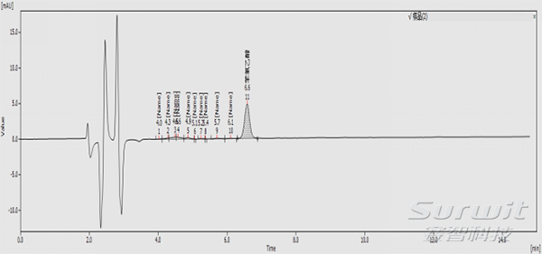 爱彩8样品处理:称取样品1.0(精确到0.001g)于具塞比色管中(必要时,置水浴去除乙醇等挥发性有机溶剂),加甲醇至10mL刻度,振摇,超声提取15min,离心(若有必要,可以进行浓缩)。经0.45um滤膜过滤,滤液作为待测溶液。