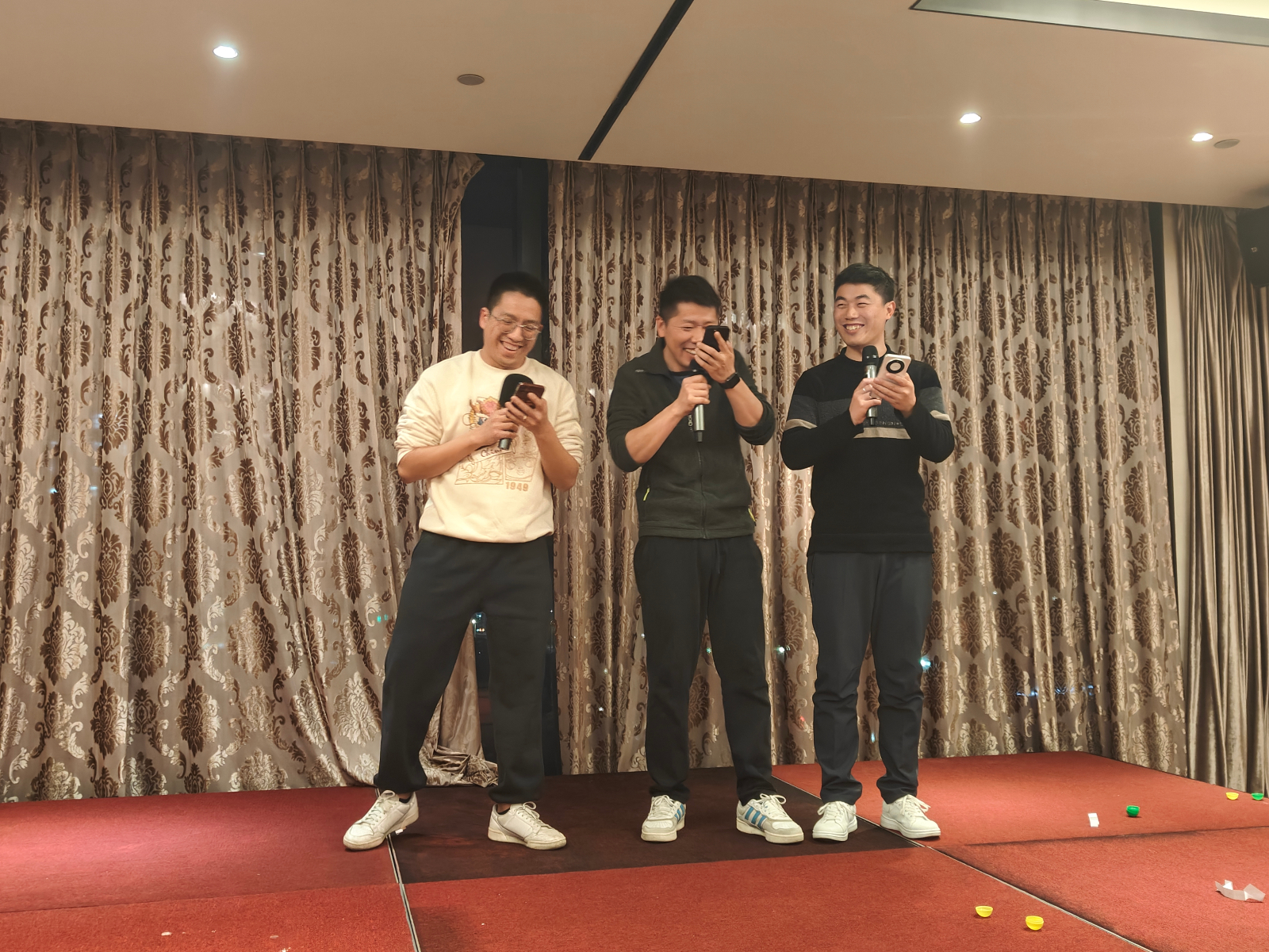 会议结束后,全体员工欢聚一堂共进晚餐。同事们都准备了精彩的节目。通过表演,部门之间加深了交流,增进了感情。节目间穿插的小游戏,让大家笑声连连,欢乐不断!