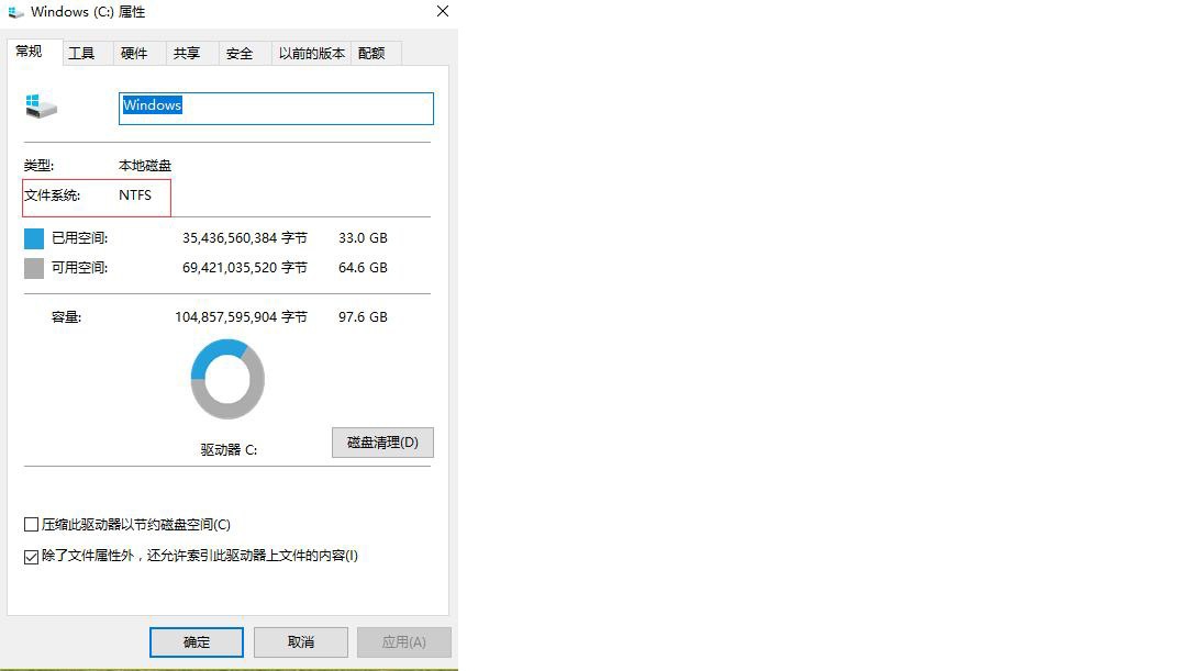 1、确定NTFS文件系统方法:硬盘→右键→属性