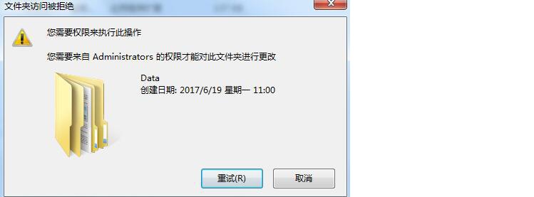 爱彩83、确定应用,然后全部点击确定关闭属性界面。设置好后再对DAT文件夹及文件删除时会提示:您需要权限来执行此操作,如图: