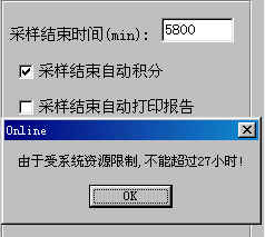 问题七:在线中输入采样自动结束时间后,跳出一窗口